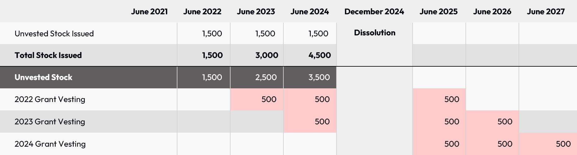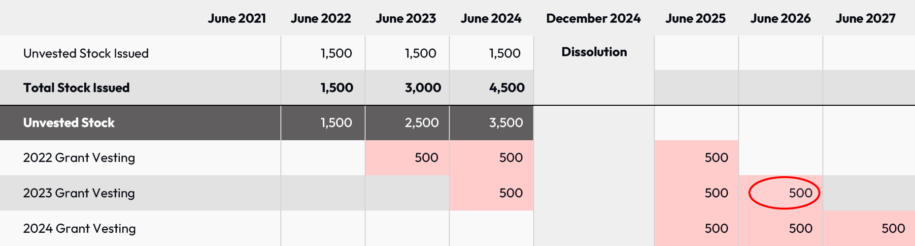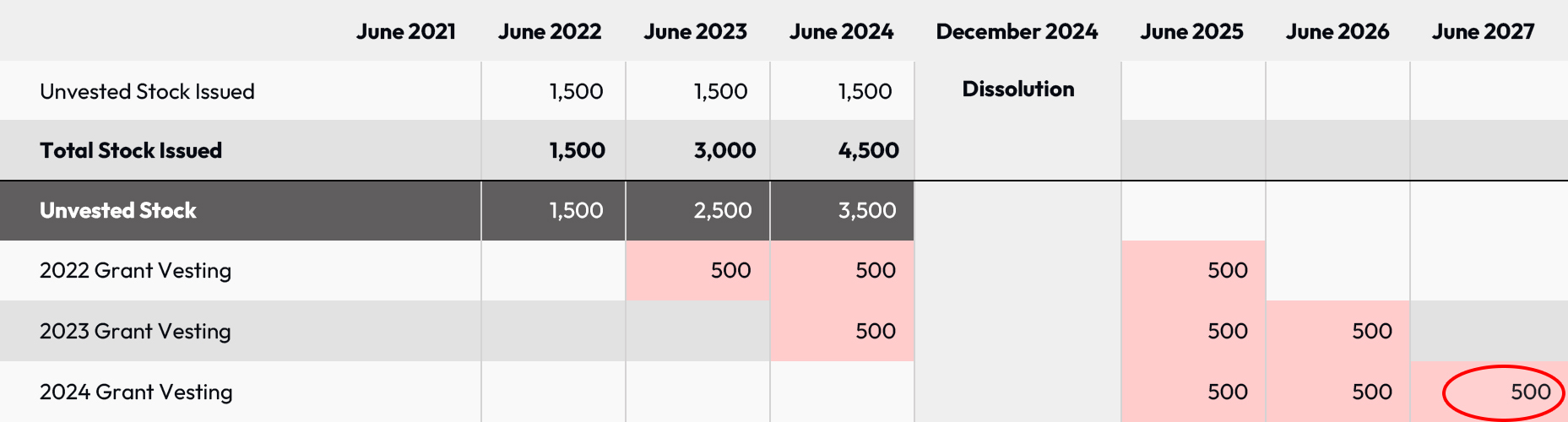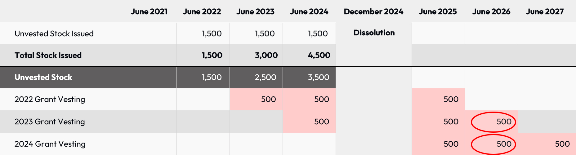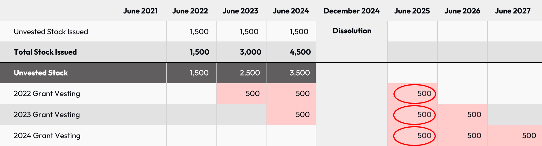 But what if Wife gets fired in 2025 and none of the remaining shares vest?