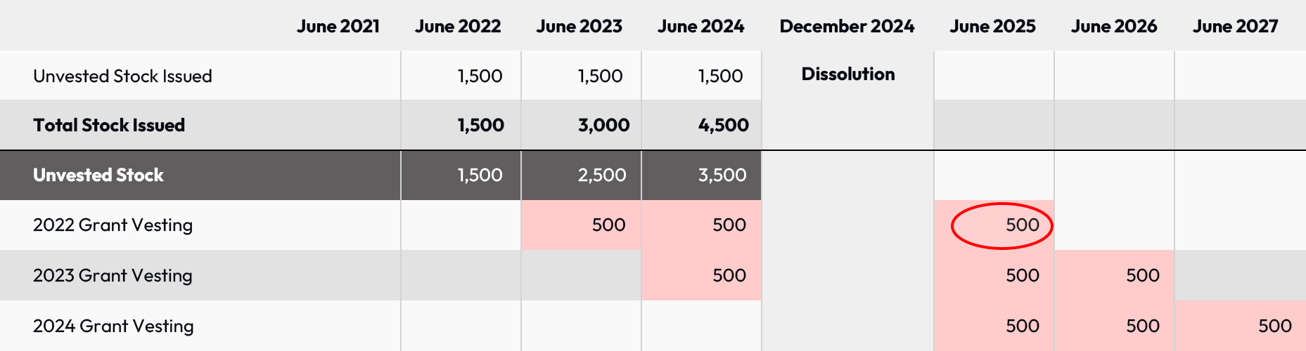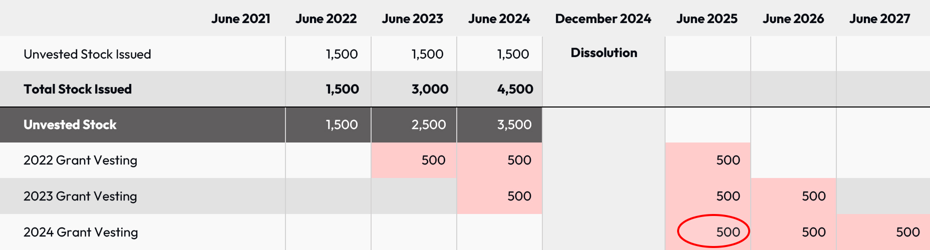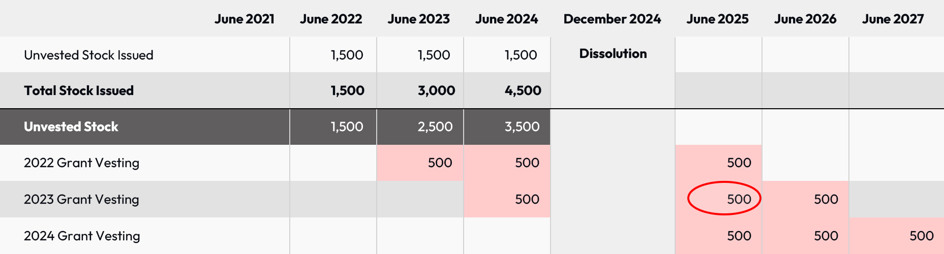 - Number of Shares to Allocate = 1500 (shares vesting in 2025)